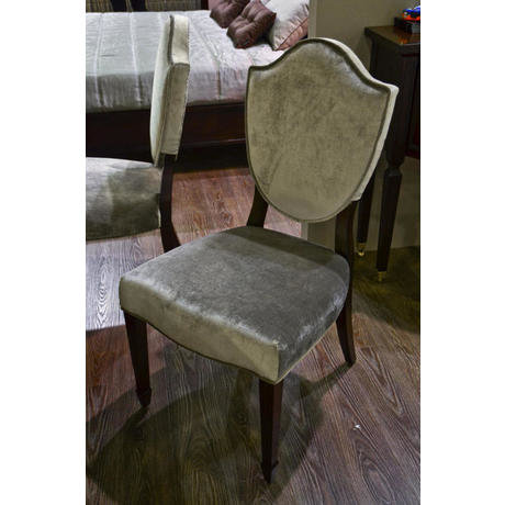 Стул выполнен в стиле Неоклассика. Ножки в отделке шпон вишни, спинка и сиденье обиты серым велюром. Каркас сделан из массива дерева.
