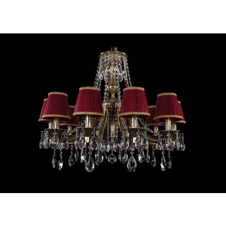 Производитель: Bohemia Ivele; Коллекция: 1771; Количество ламп: 10; Мощность лампы, W: 40; Общая мощность, W: 400; Площадь освещения, м2: 22,22; Тип лампочки (основной): Накаливания; Тип цоколя: E14; Напряжение, V: 230; Степень защиты, IP: 20; Виды материалов: Текстильные; Материал арматуры: Металл; Материал плафонов: Ткань; Цвет: Красный; Цвет арматуры: Золото; Цвет плафонов: Красный; Место установки: На потолок.