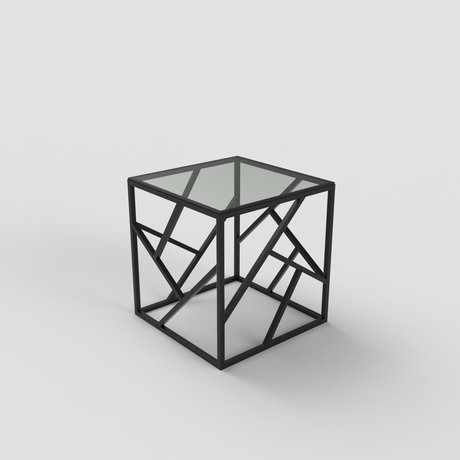 EllisЖурнальный столик с тонированным стеклом, черный каркас, геометричный дизайн, 55×55×45 см